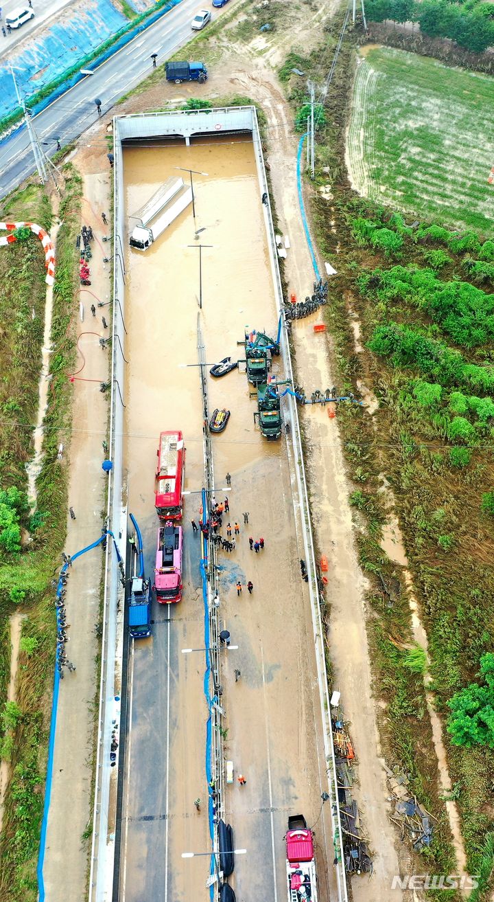 韓国豪雨:水没した地下道で行方不明者の捜索活動 /忠清北道(4/24)