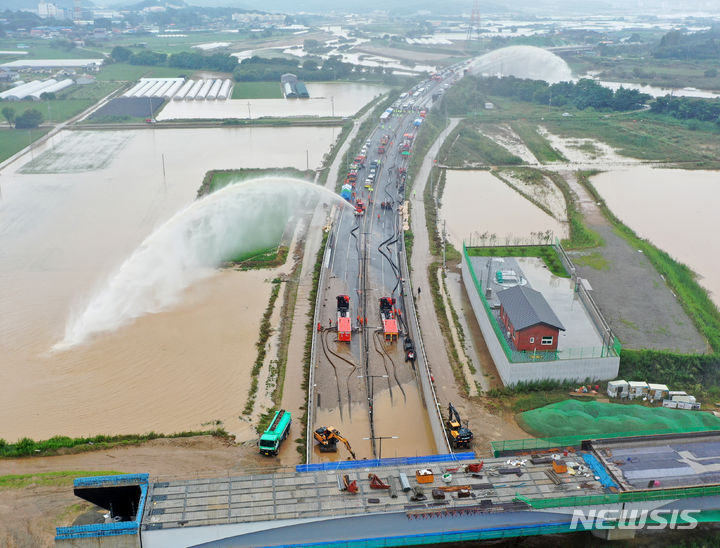 韓国豪雨:水没した地下道で行方不明者の捜索活動 /忠清北道(6/24)