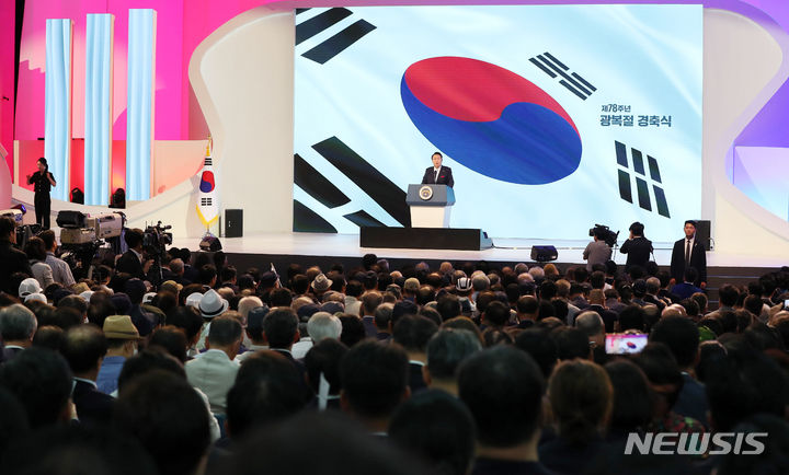 光復節慶祝式典であいさつする尹錫悦大統領(6/7)