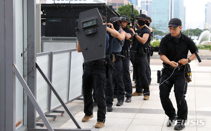 テロ鎮圧の予行練習をする警察特攻隊(6/9)
