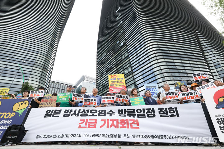 日本大使館前で放射能汚染水放流糾弾記者会見(2/13)