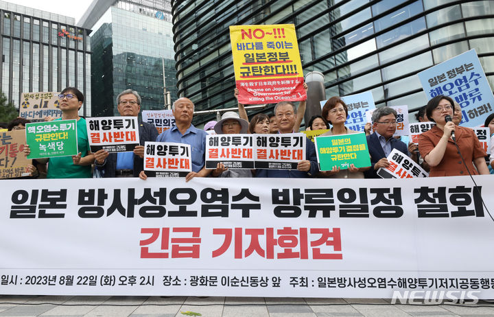 日本大使館前で放射能汚染水放流糾弾記者会見(3/13)