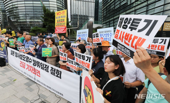 日本大使館前で放射能汚染水放流糾弾記者会見(4/13)