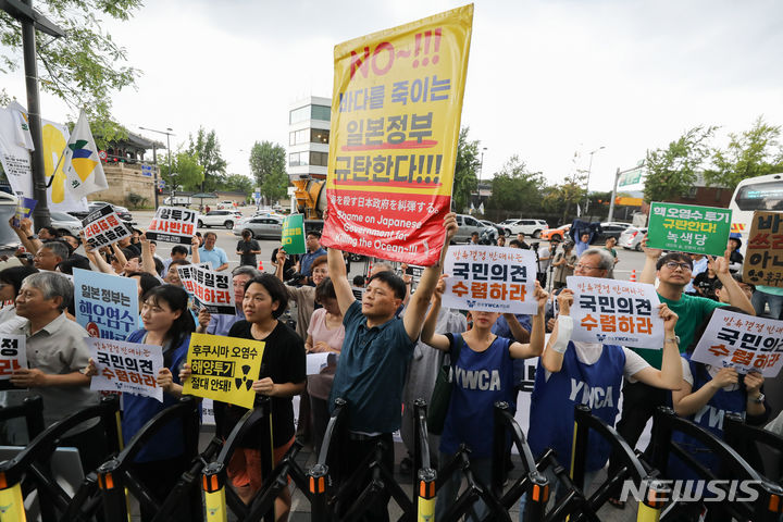 日本大使館前で放射能汚染水放流糾弾記者会見(8/13)