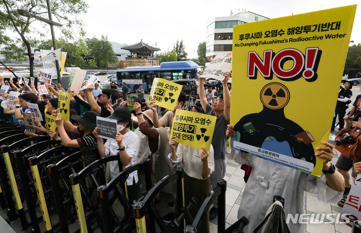 日本大使館前で放射能汚染水放流糾弾記者会見(9/13)