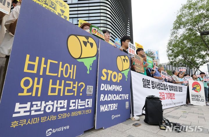 日本大使館前で放射能汚染水放流糾弾記者会見(10/13)