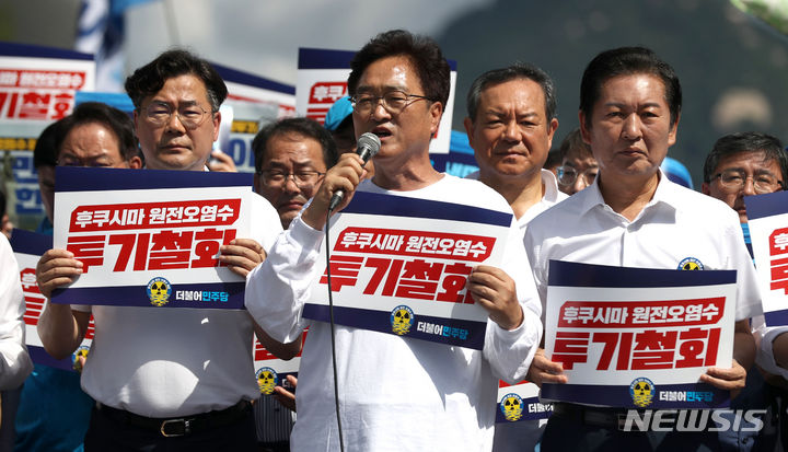 共に民主党、福島原発の汚染水海洋放出撤回を求め場外闘争(8/16)