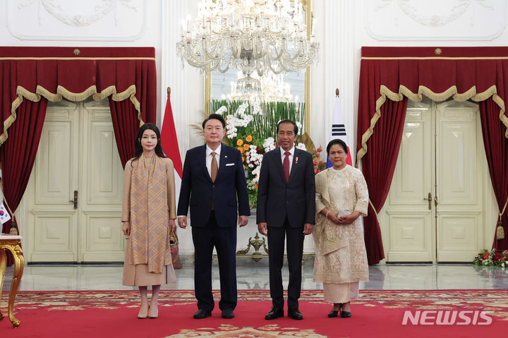 韓国大統領夫妻、インドネシア側の公式歓迎式典に出席(10/10)