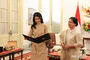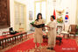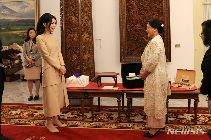 イリアナ・ジョコ・ウィドド夫人とギフト交換をする金建希夫人(2/16)