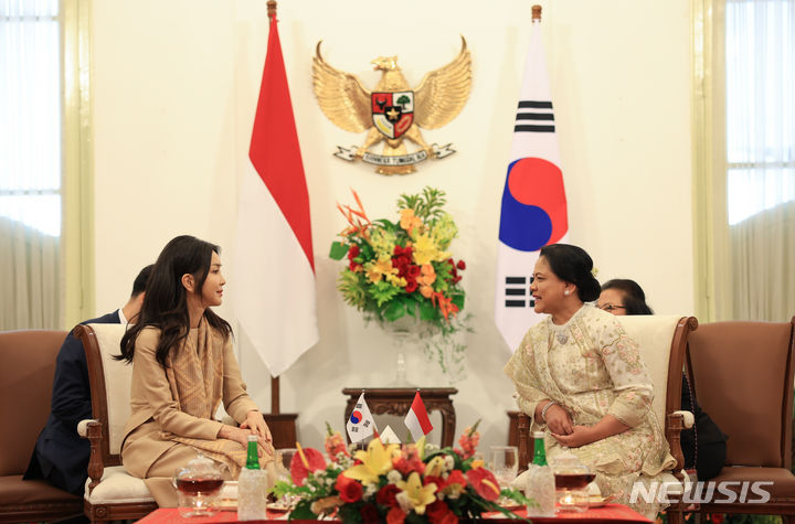 イリアナ・ジョコ・ウィドド夫人とギフト交換をする金建希夫人(11/16)
