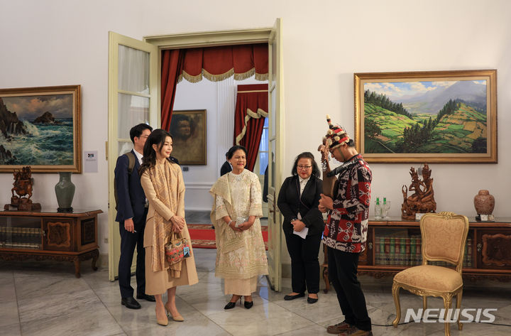 イリアナ・ジョコ・ウィドド夫人とギフト交換をする金建希夫人(15/16)