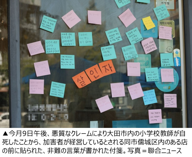 自死した教師を4年間苦しめた「モンペ」の飲食店、非難の付箋だらけに=韓国(2/2)