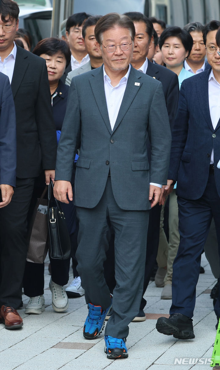 李在明代表、サンバンウルの対北送金疑惑に関連して検察に再出頭(13/26)