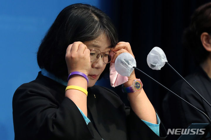 糾弾記者会見を行う尹美香議員(7/8)