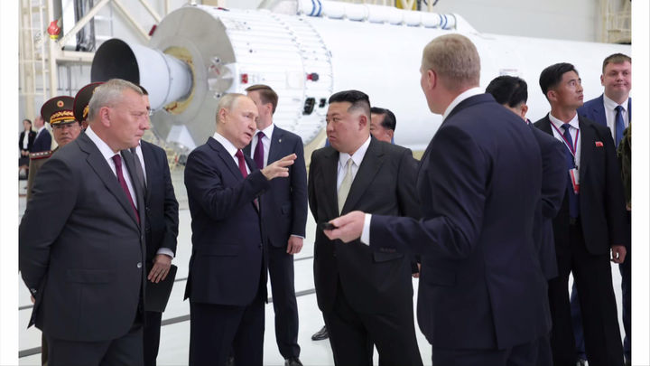 ロシアの宇宙基地でプーチン大統領と会談する金正恩総書記(8/15)
