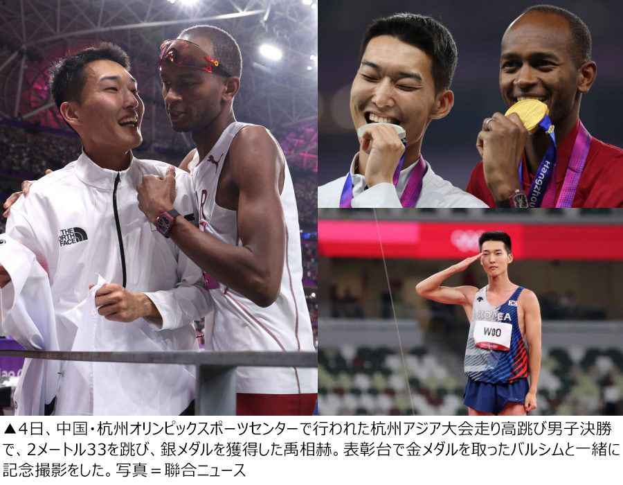 バルシムに近寄り笑顔でハグ…男子走り高跳び銀メダル禹相赫の競技マナーが話題に 杭州アジア大会(2/2)