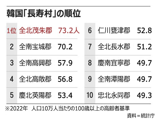 「韓国一の長寿村」は全羅道茂朱郡…トップ10に全羅道から6カ所ランクイン(2/2)