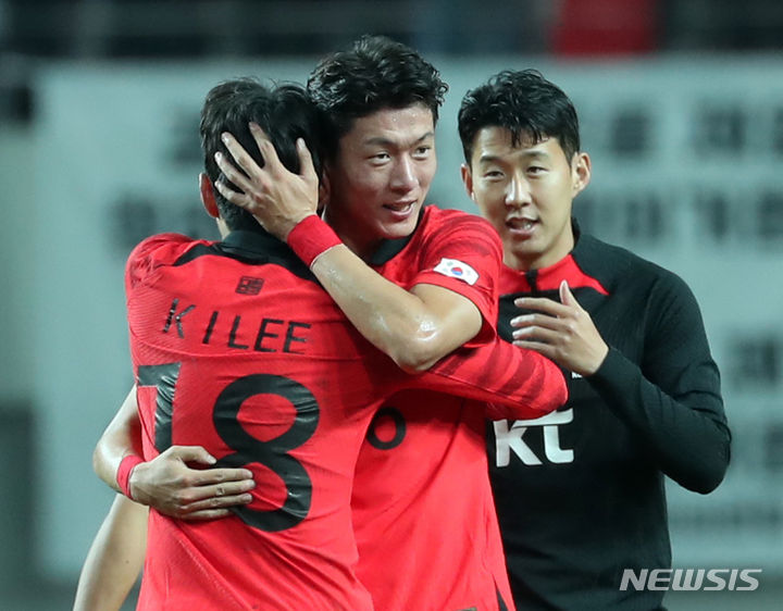 圧勝して喜ぶサッカー韓国代表チーム(13/17)