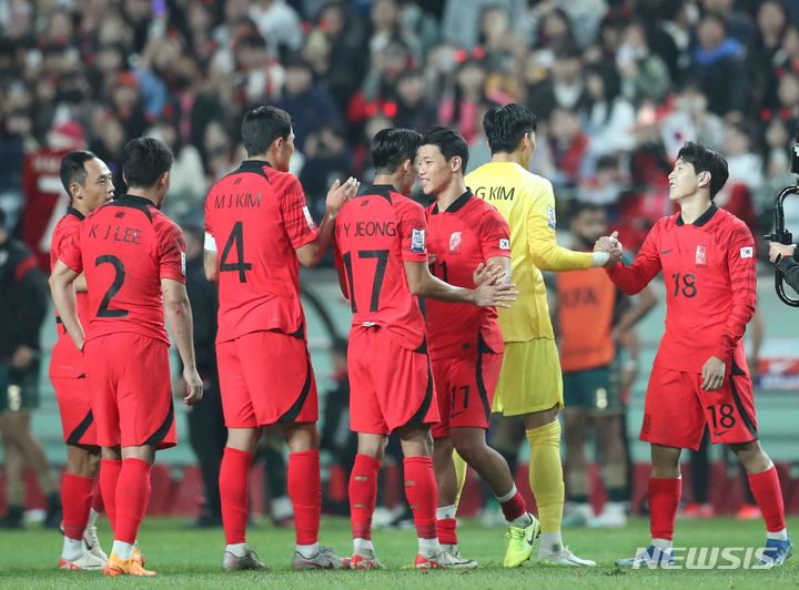 圧勝して喜ぶサッカー韓国代表チーム(5/17)