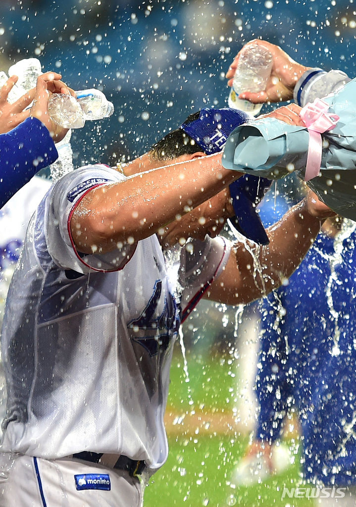 KBOリーグ初の個人通算400セーブ達成、洗礼の水を浴びる呉昇桓(2/7)