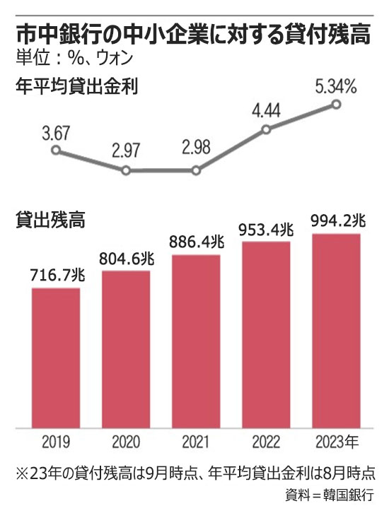 韓国の中小企業向け融資、年内に1000兆ウォン突破(2/2)