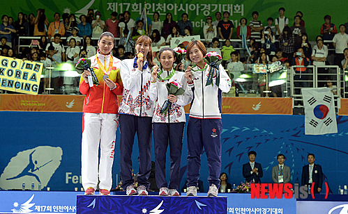 銅メダルを首にかけた南賢喜=仁川アジア大会(4/8)