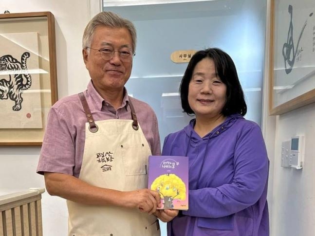 文前大統領「ぜひ読みたい」 無罪主張本を出版した尹美香議員とツーショット(2/2)