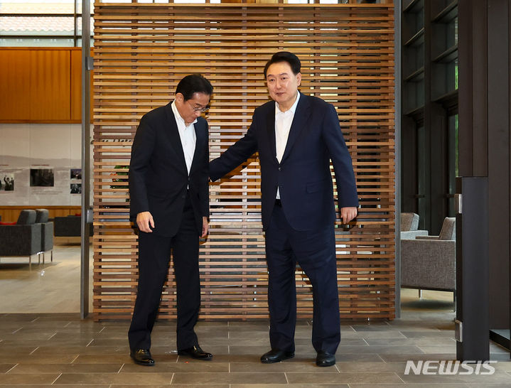 座談会を終え記念撮影をする韓日首脳(4/6)