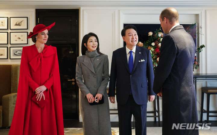 ウィリアム皇太子夫妻と記念撮影する尹大統領夫妻 /英国(2/5)