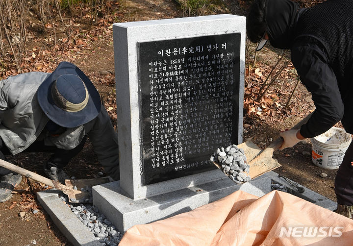 緊急撤去される李完用生家跡の碑石 =城南市ペクヒョン洞(2/14)