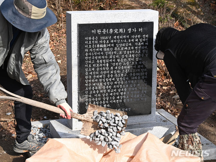 緊急撤去される李完用生家跡の碑石 =城南市ペクヒョン洞(12/14)