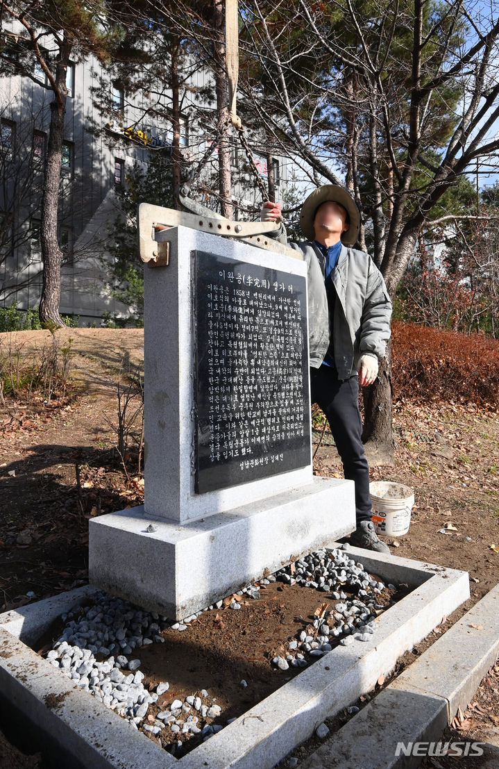 緊急撤去される李完用生家跡の碑石 =城南市ペクヒョン洞(13/14)