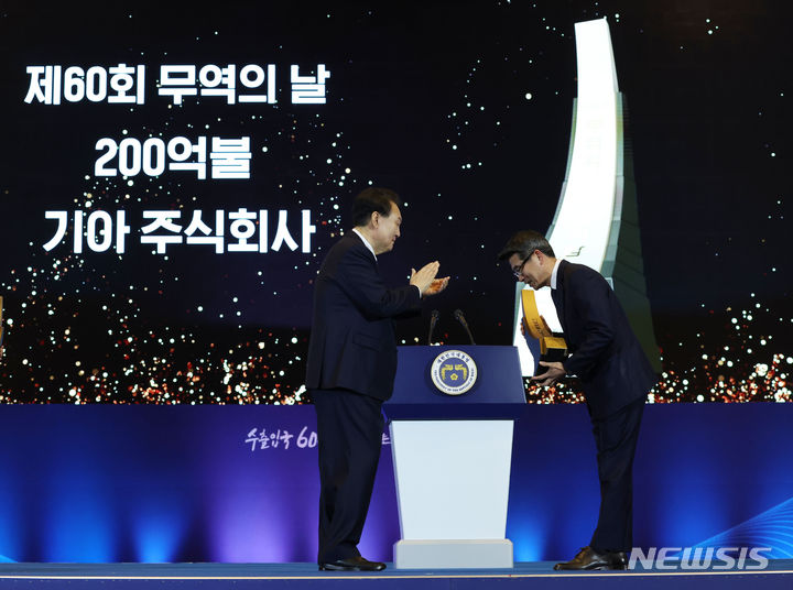 LGイノテック社長に「100億ドル輸出の塔」を授与する韓国大統領(4/9)