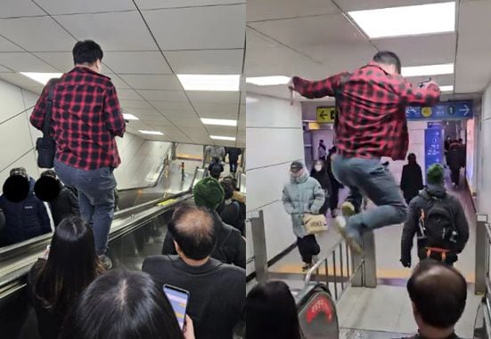 下りエスカレーターの手すりに片足で乗る男現る…危険行為に韓国ネット民騒然 /水原(2/2)