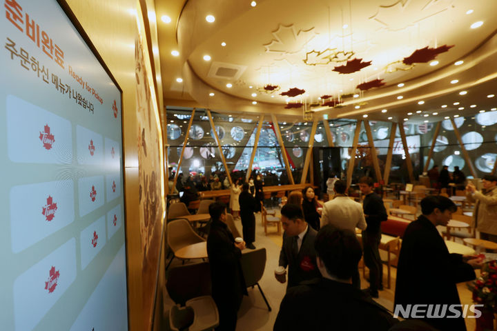 カナダのコーヒーチェーン「Tim Hortons」韓国1号店のグランドオープンを待つ市民(11/11)