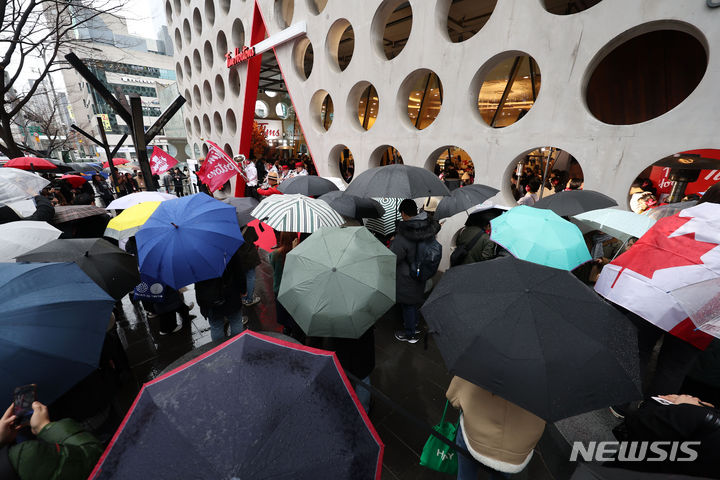 カナダのコーヒーチェーン「Tim Hortons」韓国1号店のグランドオープンを待つ市民(4/11)