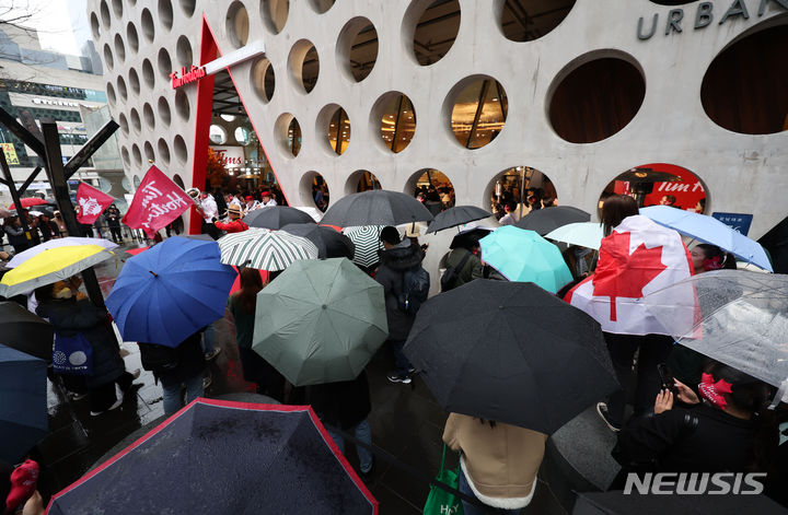 カナダのコーヒーチェーン「Tim Hortons」韓国1号店のグランドオープンを待つ市民(5/11)