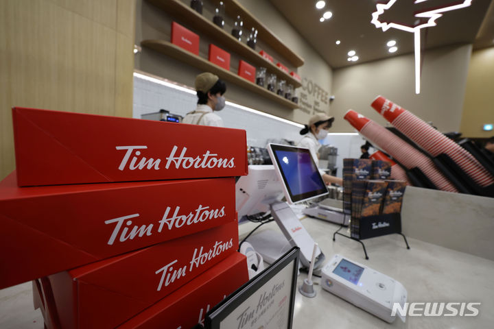 カナダのコーヒーチェーン「Tim Hortons」韓国1号店のグランドオープンを待つ市民(9/11)
