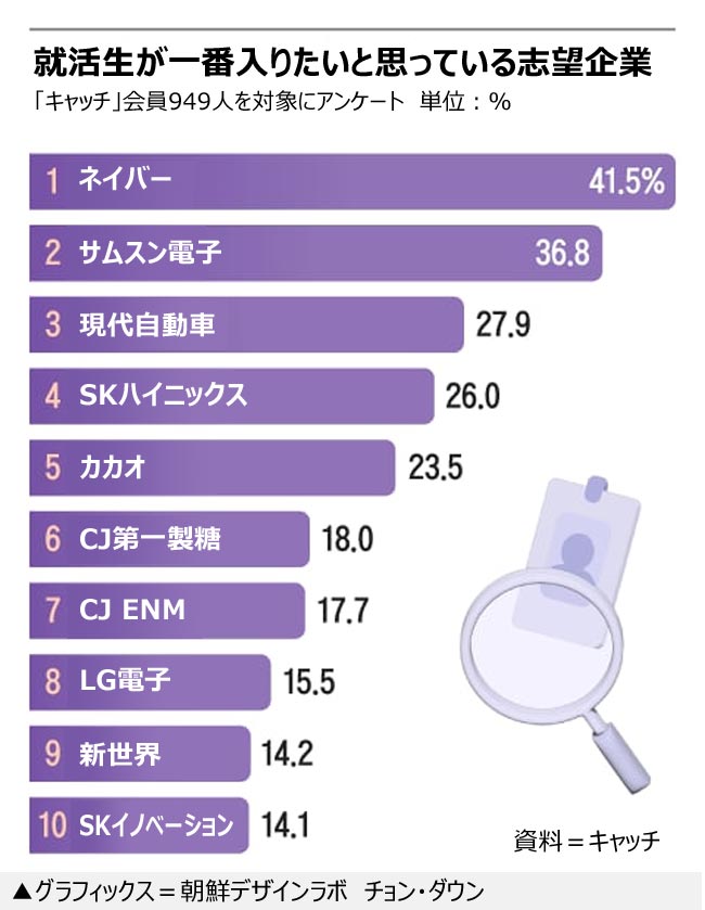 サムスン電子は2位…韓国の就活生が選んだ「一番入りたい企業」は(2/2)