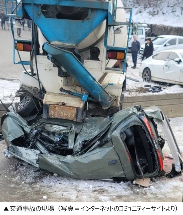 ミキサー車の下敷きになった現代自の軽SUV、原型をとどめぬ姿に /坡州(2/2)