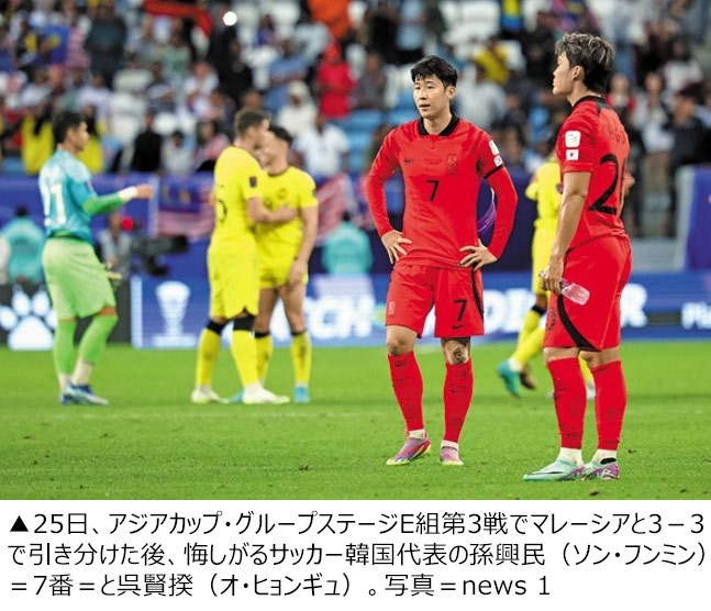 サッカー:韓国、ランキング130位のマレーシア相手に辛くも3-3のドロー アジア杯2023(2/2)