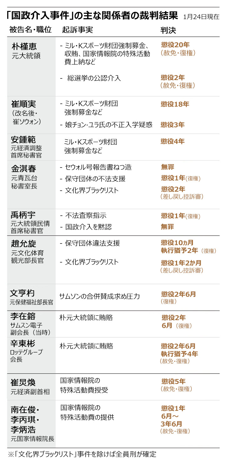 2016年崔順実疑惑に端を発した「国政介入事件」裁判終結、58人起訴・48人有罪(2/2)