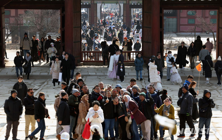 旧正月の連休、韓服を着た外国人観光客(7/8)