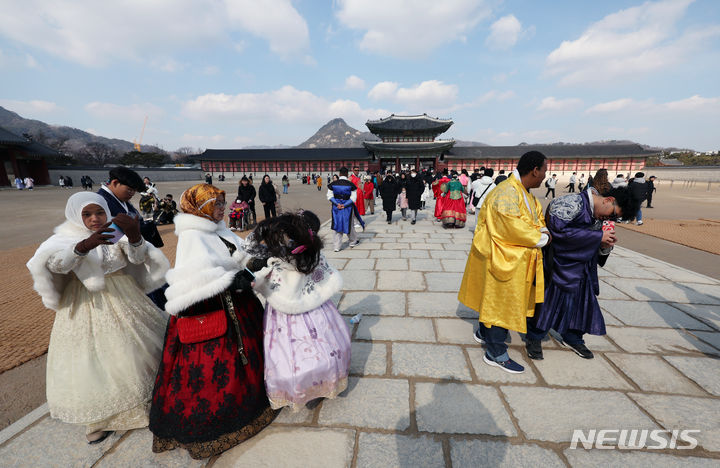旧正月の連休、韓服を着た外国人観光客(8/8)