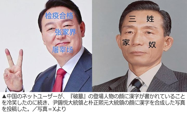 尹錫悦大統領と朴正煕元大統領の顔に漢字、中国ネット民が投稿した合成写真が話題に(2/2)