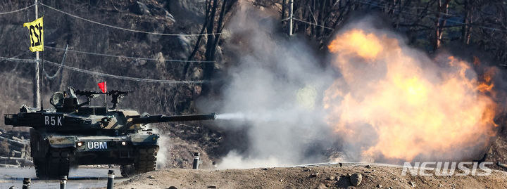 火を噴く韓国陸軍第17師団K1E1の戦車砲(4/10)