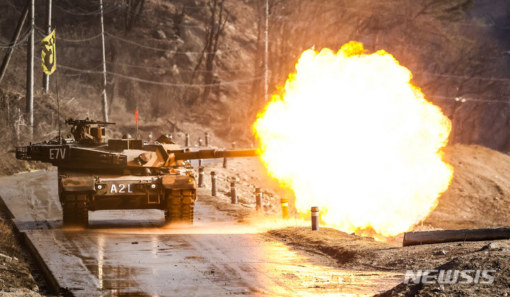 火を噴く韓国陸軍第17師団K1E1の戦車砲(8/10)