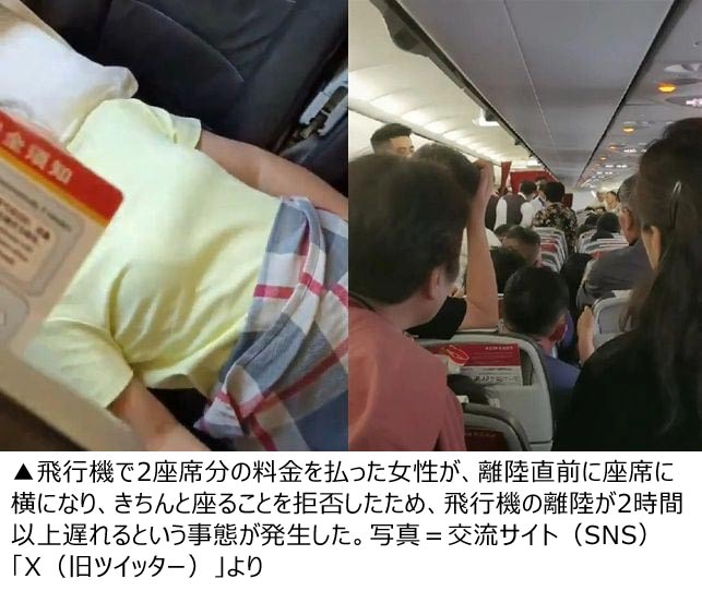 「2座席分の金払った」 病気を理由に離陸直前に横になった中国人女性、離陸を2時間遅らせる(2/2)
