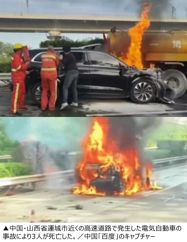 「エアバッグも作動しない、ドアも開かない」 中国・山西省の高速道路でファーウェイ「M7」が散水車と追突、車両火災で一家3人が死亡 (2/2)