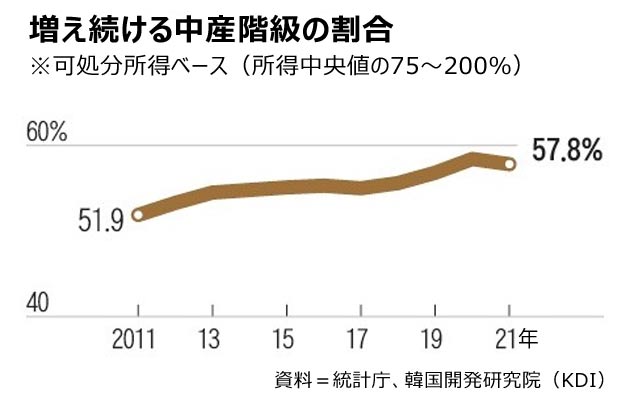世帯月収700万ウォン超なのに…韓国所得上位20%の人「自分は中産階級」76.4%(2/2)